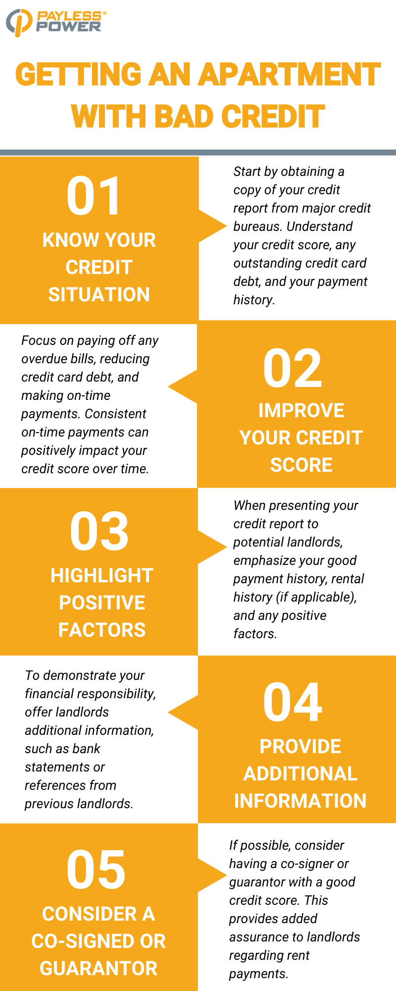 Consider asking a family member or friend with a good credit score to co-sign the lease or act as a guarantor. This provides landlords with added assurance regarding rent payments.