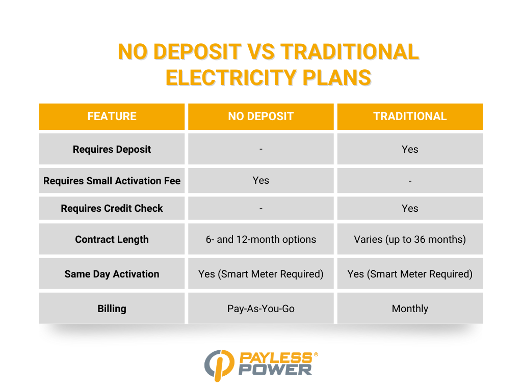 No Deposit Electricity vs. Traditional Electricity Plans